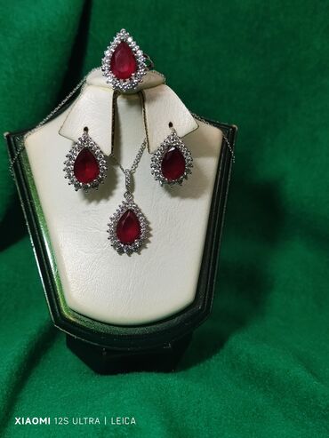 Prob 925 gümüş 18k ag qizil örtüklə üzük sırğa kulon boyunbağı sep