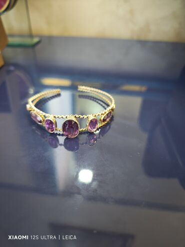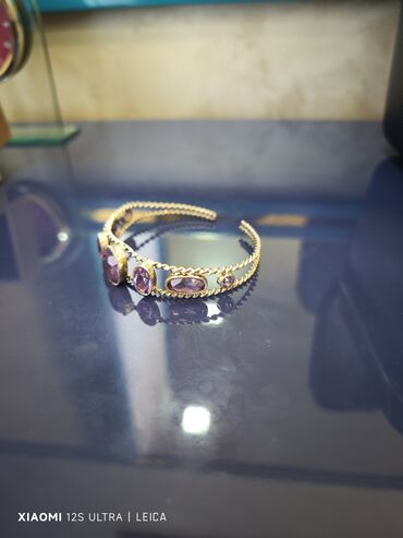 GümüşQedimi əl işi gümüş qolbaq Təbii aleksandrit ve ametist daşlarda bəzədilib