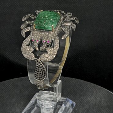 Ünvandan götürməQedimi tek ekzemplyarda gumus qolbag İndiya əl isi tebii almaq brilliant zümrüd yaqut qaslarla bəzədilib Стариннаый серебряный браслет 925 пробы Натуральные алмазы бриллиантами рубины Центральный камень ковровые Редкий натуральный Индийский изумруд