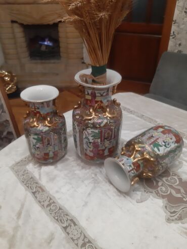Qedimi,Farfor,Kitay,1956 Ci İl,Guldan 3-Ədəd,İşlənməyib Upakovkada