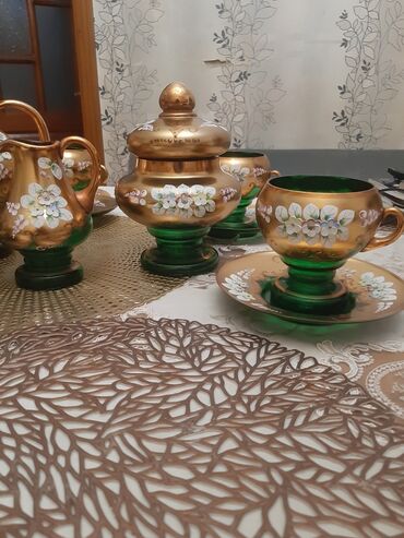 QİYMƏT:300 Azn. Qədimi Bogema original çay servizi, 1978ci ilde Çexoslovakiyadan gətizdirilib öz zavodskoy qutusundadir, islənməyib,ideal vəziyyətdədir hər bir predmeti. - Dəst premium hədiyyə qutu...