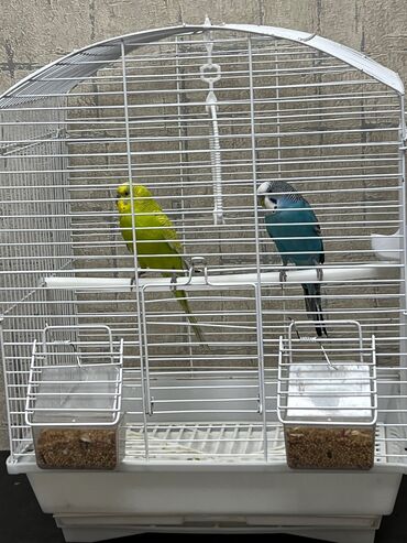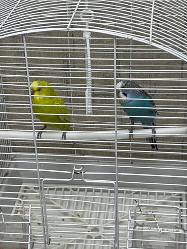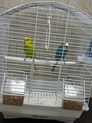Salam. Quşlar cütdü bir erkək bir dişi. Yaşıl erkək göy dişidi Qiymətə ikisi birlikdə aiddi. Quş qəfəsi+quş damı ikisidə veriləcək üsdündə. Şəkildə gördüyünüz kimi.