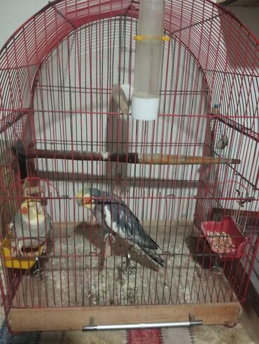 Məhsul: Kakadu növü nimfa cütü və aksesuarlarla qəfəs komplekti - İki ədəd nimfa (cockatiel) – biri ağ-sarı, digəri boz-ağ ləkəli, hər ikisi sarı taclı və yanaqlarında narıncı ləkələr - Geniş tağl...