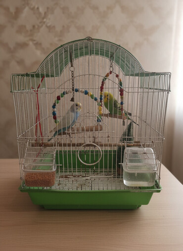 - İki dalğalı tutuquşu (birisi sarı-yaşıl, digəri göy-ağ rəng çalarlarında).