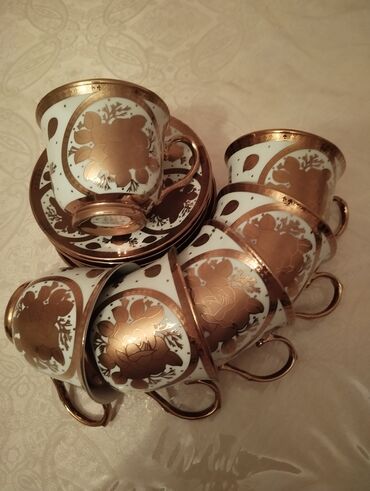 Məhsul: Qəhvə fincan dəsti – VEEX, German Design - Dəst tərkibi: 6 ədəd fincan + 6 ədəd kvadrat formalı qalın nəlbəki (ümumilikdə 12 parça) - Material: Porcelan/keramika - Rəng: İvory/ağ əsas, qız...