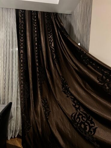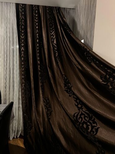 - Komplekt: şəkillərdə görüldüyü kimi tünd pərdə; arxadakı ağ tül ayrıca elementdir