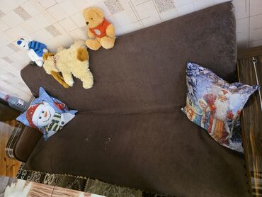 - Rənglər: tünd qəhvəyi korpus, qəhvəyi yumşaq hissə; dekorativ tematik yastıqlar görünür.