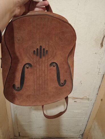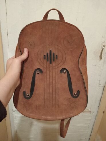 Məhsul: Qəhvəyi dəri bel çantası – musiqi aləti (violin/gitara) motivli dizayn