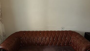 Klassik tərzli qəhvəyi kreslo-divan dəsti.