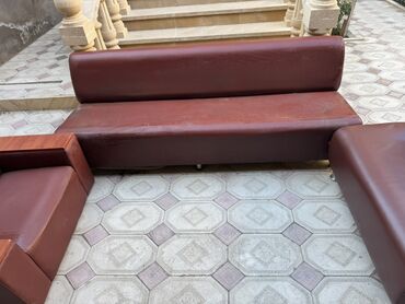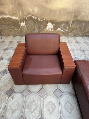 Qiymete hamsi daxildir Dərin qəhvəyi rəngdə olan bu yumşaq dəstə bir divan və iki tək kreslo daxildir. Divan iki nəfərlik, kreslolar isə tək nəfərlikdir. Kreslolardan birinin qoltuqaltıları qəhvəyi taxta materialdandır. Bu dəst qonaq otağı və ya ofis üçün uyğun ola bilər.