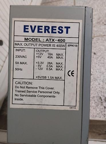 Qida bloku 400w-dur. Tam işlək vəziyətdədir problemisizdi. Əsas Texniki Xüsusiyyətlər: Maksimum Güc: 400 Watt. Giriş Gərginliyi: AC 220V, 50-60Hz. Çıxış Gərginlikləri (DC Output): +5V: 15A +3.3V: 1...
