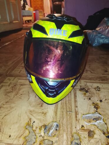 - Rəng/naxış: Sarı-çəhrayı tonlu parlaq vizor, sarı-yaşıl və qara əsas, yanlarda dairəvi naxışlar