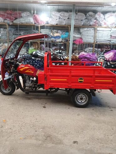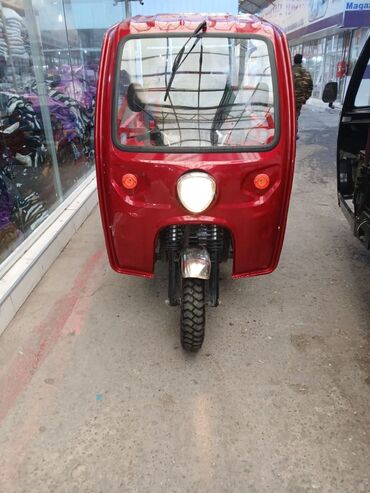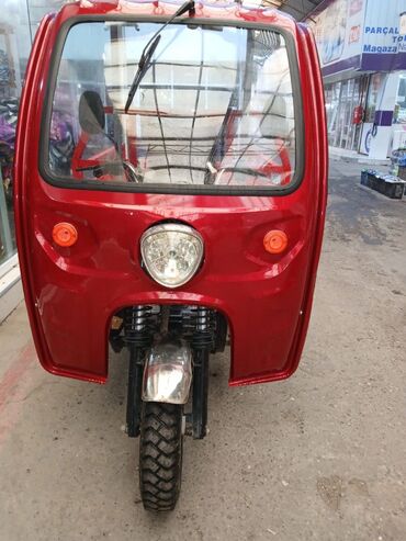 Yükdaşıma üçtəkərli motosikl (kargo tricycle) qiyməti 1800 0552466437 - Rəng: qırmızı, ön hissəsi örtülü kabinəli - Güclü benzin mühərriki, mexaniki ötürmə - Ön amortizatorlu asqı, diskli təkər; a...