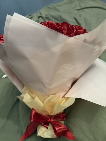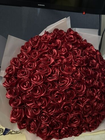 Məhsul: Qırmızı atlas güllərdən hazırlanmış dekorativ buket