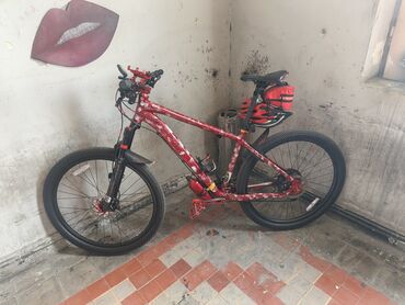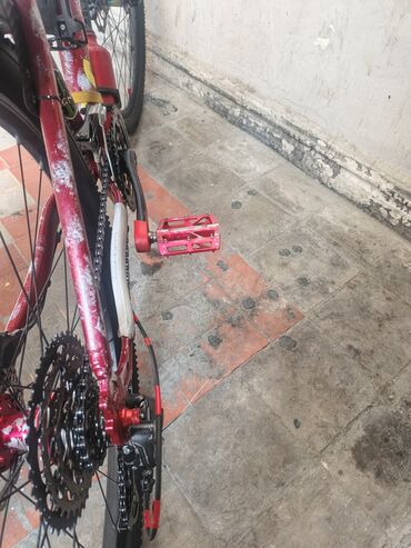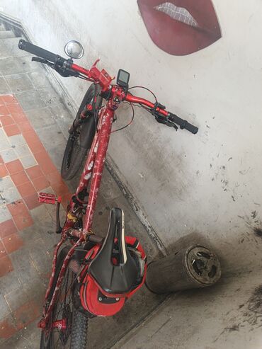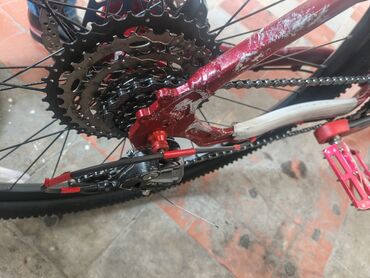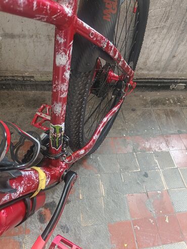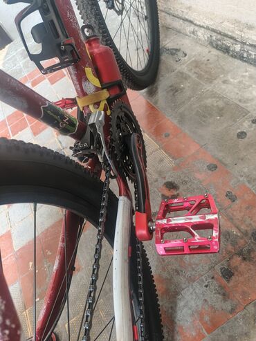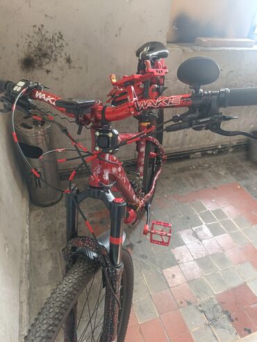 Qırmızı rəngli dağ velosipedi – çoxsaylı aksesuar və təkmilləşdirmələrlə