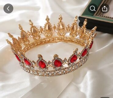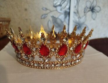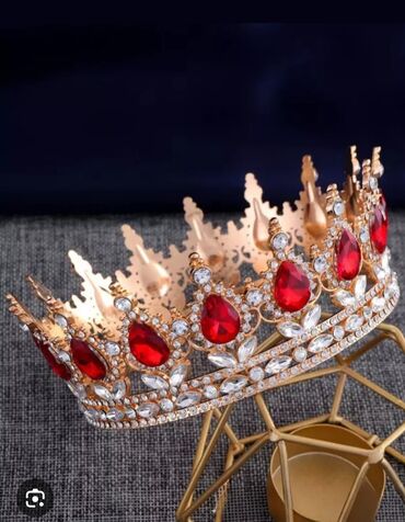 Kristal daşlarla işlənmiş taç/diadem - Rəng: Gümüşü baza, şəffaf kristallar - Dizayn: Üst hissədə fərqli ölçülü fasetli kristal daşlar və ləçəyə bənzər uzunsov daşlar; hündürlüklü kompozisiya sayə...