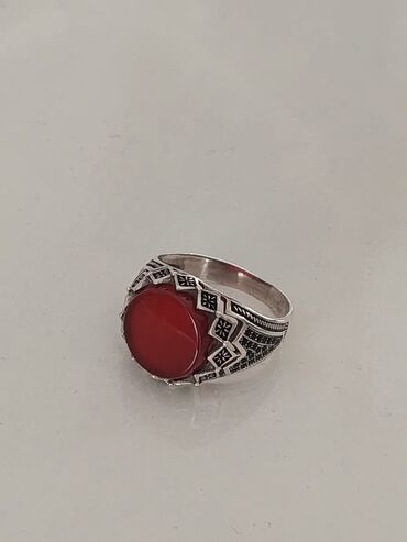 Kişi üzüyü – qırmızı daşlı, şərq naxışlı