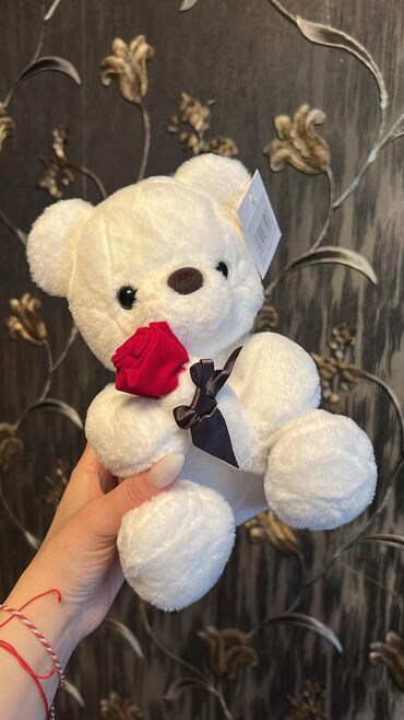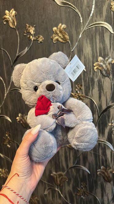- Dizayn: Ayı balası sağ əlində qırmızı güldən hazırlanmış aksesuar tutur, boynunda tünd lent qaşqayı var