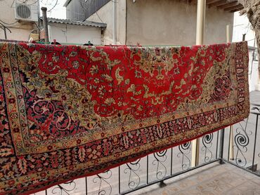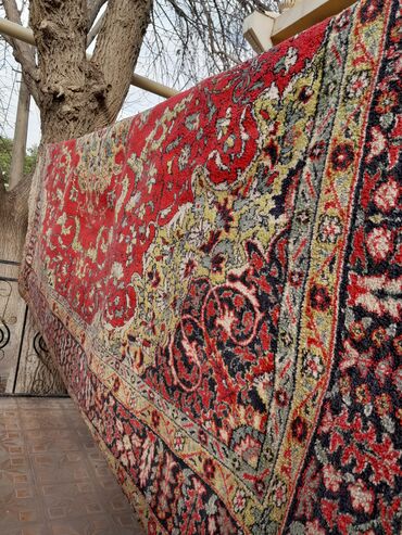 Qırmızı fonlu klassik naxışlı xalça ковёр старый 2,500 на 3,500 - Material: sıx toxunuşlu xovlu xalça (fotolarda tekstura aydın görünür) - Rəng palitrası: bordo/qırmızı fon, krem, tünd-mavi, açıq...