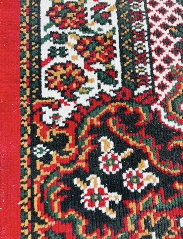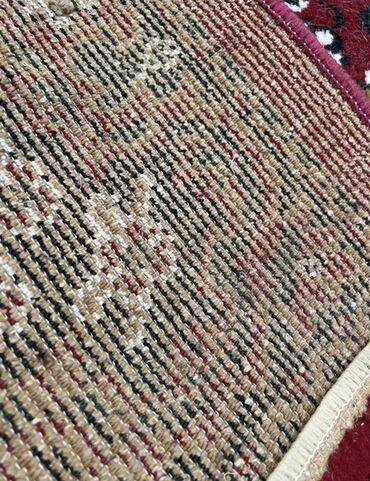 Xalça – klassik Şərq üslubunda - Rənglər: əsas sahə tünd qırmızı/bordo, krem və bej tonlarında mərkəzi medalyon, qara, mavi və qızılı çalarlarla zəngin naxışlar - Dizayn: mərkəzi medalyon, çoxqat ...