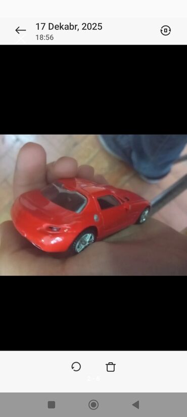 Qırmızı idman avtomobili model oyuncağı - Korpus: metal və plastik detalların kombinasiyası, parlaq qırmızı rəng - Miqyas: təxminən 1:32–1:36 (şəkillərə əsasən kompakt kolleksiya ölçüsü) - Funksiy...