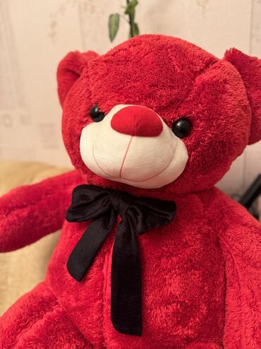 Şirin ifadəli üz cizgiləri, yumşaq toxunuşu və dekorativ qara lentli dizaynı ilə diqqət çəkən böyük ölçülü ayı.