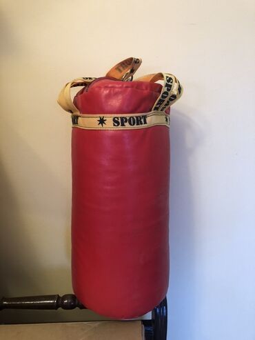 Boks üçün asma zərbə kisəsi satılır.Hündürlük 40sm. - Rəng: qırmızı - Material: süni dəri örtük - Asma sistemi: üst hissədə metal halqalar və karabin, “SPORT” yazılı möhkəm lentlərlə perimetri boy...