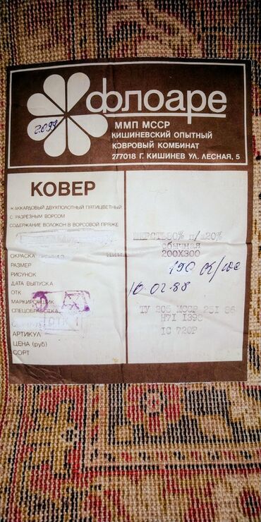 - İstehsalçı: “Floare” xalça kombinatı, Kişinyov
