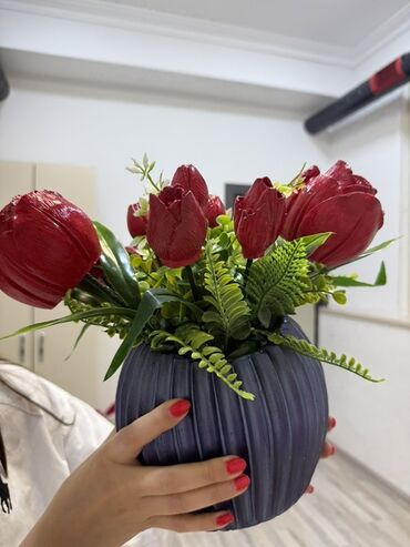- Üstünlüklər: su tələb etmir, solmur, forması sabitdir; parlaq qırmızı tonlar interyerə vurğu qatır.