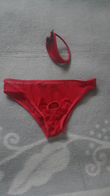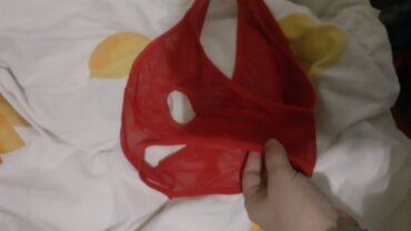 1) Qırmızı şəbəkəli/qazlı parça baş aksesuarı – iki dairəvi kəsiyi olan, elastik tordan hazırlanıb, başa rahat oturması üçün çevik formadadır. Fotoşəkildə göstərilən kəsiklər dekorativ dizayn üçündür; saç üzərində fərqli şəkildə yerləşdirib müxtəlif görüntülər yaratmaq olar.