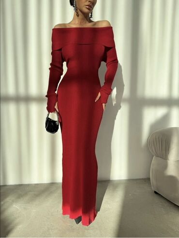 Qırmızı gecə geyimi – zərif və diqqətçəkən dizayn - Uzun siluet, ayaq hissəsində ön yarıqla rahat hərəkət imkanı - Asimmetrik V-yaxa; bir tərəfdə geniş kəsim, digər tərəfdə çiyindən düşən detal - ...