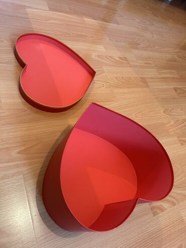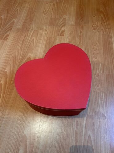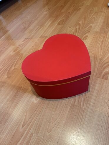 Qırmızı rəngli, ürək formalı hədiyyə qutusu. Qutunun səthi qızılı rəngli ürək, ox və "LOVE" yazısı motivləri ilə bəzədilmişdir. İçərisi ağ rəngdədir və hədiyyələrin təqdimatı üçün ideal bir seçimdir.