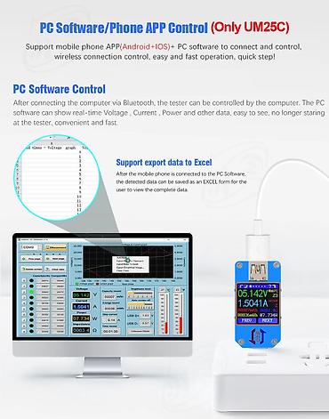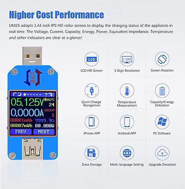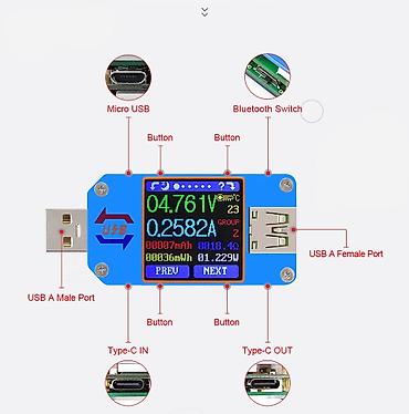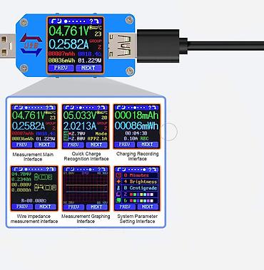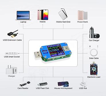 Şarj cihazları, USB kabelləri, adapterlər, powerbank-lar və USB portlarını test etmək üçün cihaz.