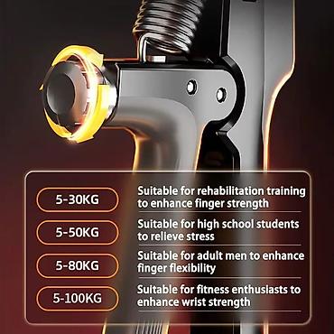 Bu, əllər, biləklər və qollar üçün tənzimlənən müqavimətə malik tutma gücləndiricisidir. Təsvir olunan alət məşq zamanı tərəqqinizi izləməyə kömək etmək üçün tez-tez inteqrasiya olunmuş elektron sayğac xüsusiyyətinə malikdir.