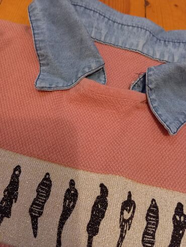 - Material: yumşaq toxumalı trikotaj; yaxa isə denim/parça effektli.