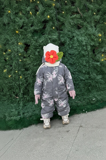 Uşaq üçün qış kombinezonu - Marka: Obaibi (etiket üzərində) - Naxış: krem əsaslı, kiçik çiçəkli print - Quruluş: tam bədən kombinezon, kapüşonlu - İçlik: yumşaq, isti, tüklü/fleece astar kapüşonda...