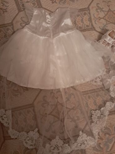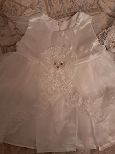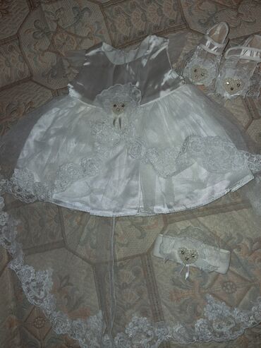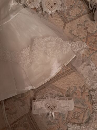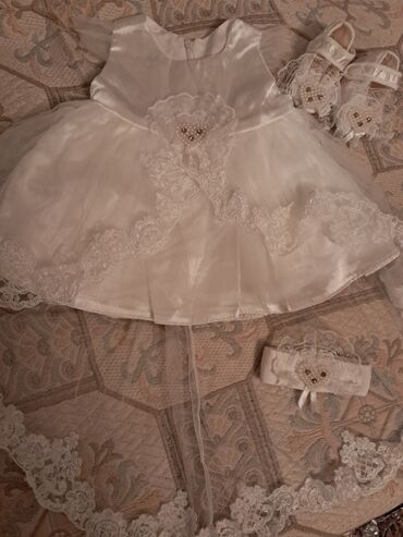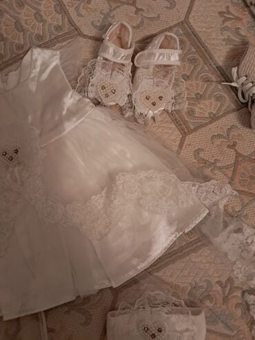 1 yaş tedbirine tikilib 200 mana. 1 defe geyinilib, ister ayaqqabı ister paltar. Ayaqqabı 40 mana alınıb. 2 si bir yerde 100 mana satıram. Rəng: klassik ağ Stil: zərif, şənlik üçün Ayaqqabı: qız u...