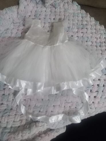 Uşaq üçün ağ ziyafət geyimi 5/6 yaş - Model: balıqçı olmayan, geniş ətəkli balerin silueti - Parça: çoxqatlı tül ətək, atlas və tüllə tamamlanmış üst hissə - Üst hissə: çiyin açıq “off-shoulder” ...