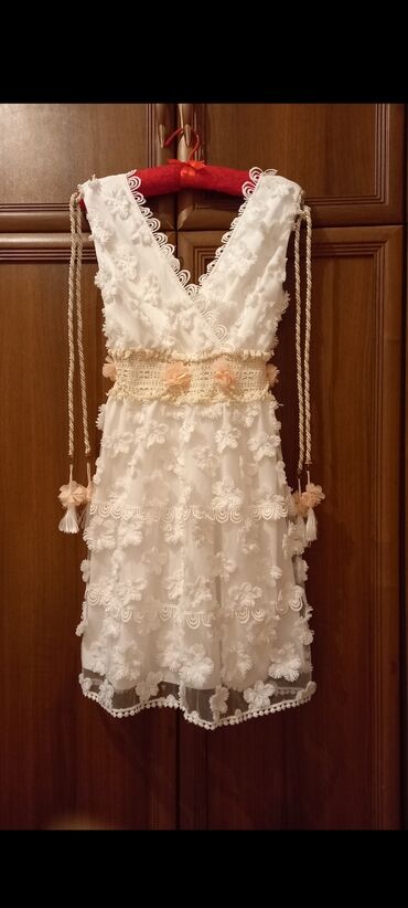 Həyat yoldaşıma toyumuz üçün aldığım libasdır. Tül işləmələrlə biryerdə 150 AZN almışam. Cəmi bir dəfə toyumuzda geyinilib. Artıq balaca olur deyə satılır. Ağ rəngli zərif Qadın/Xanım paltarı - ...