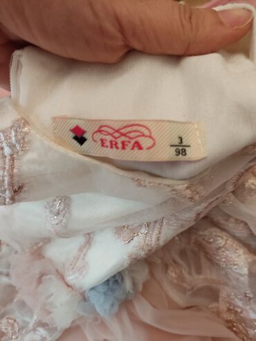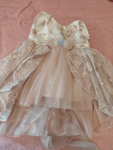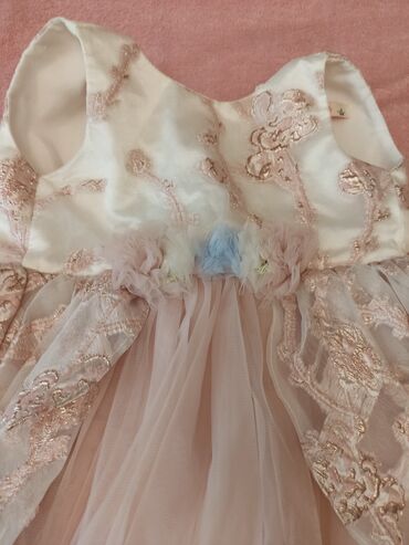 Uşaq üçün bayramlıq/paltar – ERFA, ölçü: 2-3 yaş (98 sm).Arxasında shleyfi var .Naxışları qabariqdi,gozeldi.Baha alınıb.tezeden ferqlenmir - Rəng: açıq krem üst və pudra-çəhrayı ətək. - Üst hissə ...