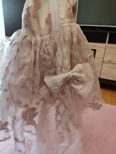 Uşaq qız üçün zərif paltar Papitodan almışam 45 manata, satıram 15 manata - Rəng: Pudra/solğun çəhrayı - Ölçü: 4-5 yaşa gedir - Dizayn: - Şəffaf, yüngül orqanza üst qatlı ətək hissəsi, dalğalı k...