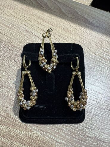 - Dizayn: çoxqatlı incə tellər üzərində toplu dekor, damla formalı asqı və sırğalar