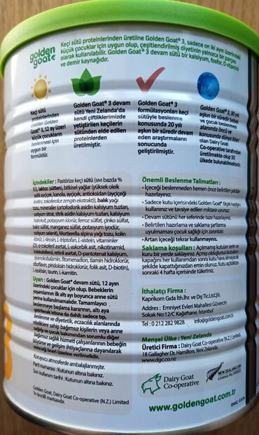 Golden Goat 3, süd məhsulları istehsalında yüksək keyfiyyət standartlarına sahib bir ölkə olan Yeni Zelandiyada istehsal olunur. Bu qidalanma bütün təhlükəsizlik tələblərinə cavab verir və körpələri yalnız ən yaxşıları ilə təmin edir. Qızıl Keçi 3 seçərkən, valideynlər uşağının sağlamlığı və aktiv böyüməsi üçün yaxşı qidalandığına əmin ola bilərlər.