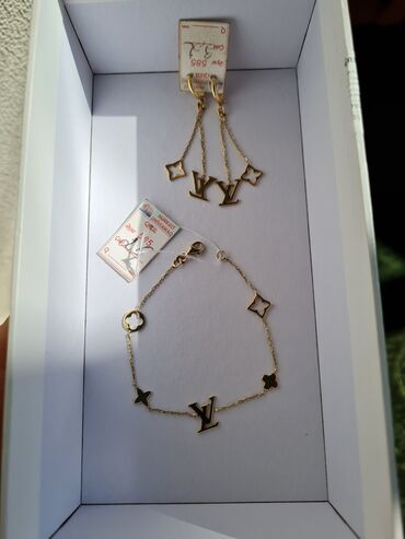 Qızıl muncuq toplu dəst. Dəstə sırğa,qolbaq, üzük daxildir. Üzük - 2.36 gr. Sırğa -3.9 gr Qolbaq - 2.5 gr Qiymət qrama və satışa əsasən tənzimlənir. Əlavə məlumat üçün əlaqə nömrəsi ilə əlaqə saxla...
