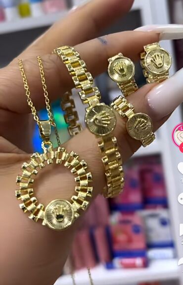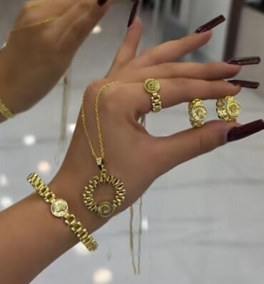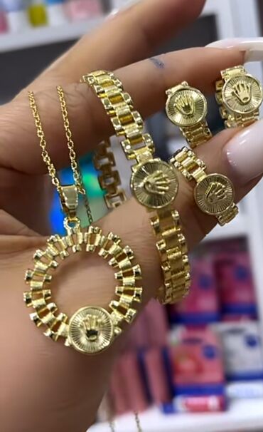 - Komplektə daxildir: boyunbağı, qolbaq və bir neçə üzük.