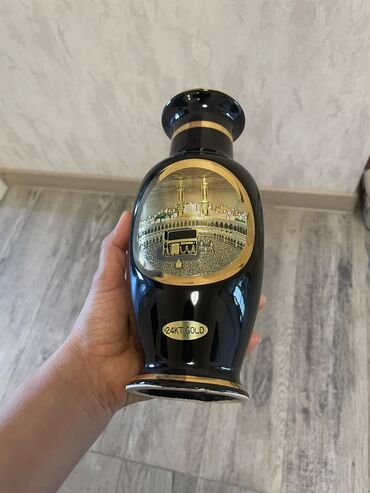 Qizil suyu ishlemesi ile uzerinde Mekke shekli olan vaza. Hundurluyu 21 sm, agzinin diametri 6.5sm