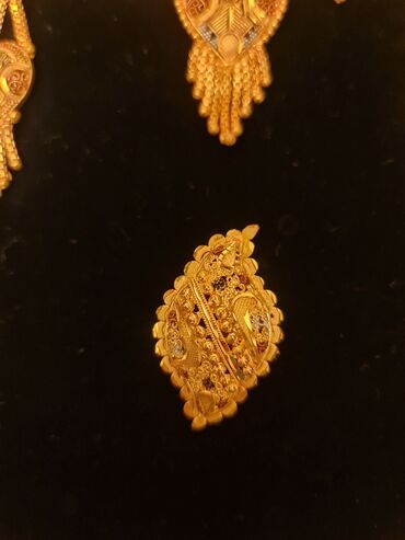- Üzük: iri, damla/yarpaq formalı başlıq, xırda muncuq və açıq işlikli naxışlarla.