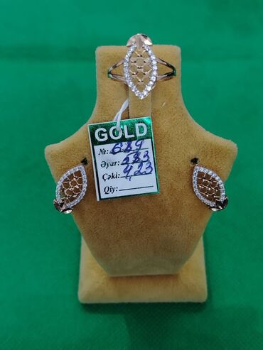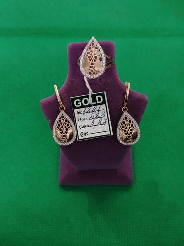 Qızıl zərgərlik dəstləri – üzük + sırğa + kulon
