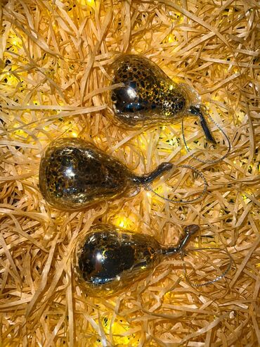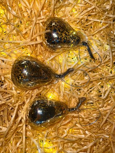 Qızılı armud formalı Yeni il bəzək seti (3 ədəd) - Material: şüşə, içdən güzgü-effektli qızılı örtük - Üzərində naxışlı, “mercury glass” effektli parıltı - Asma üçün gümüşü rəngdə ip qayışı - Form...