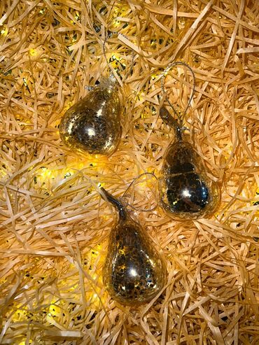 Qızılı armud formalı Yeni il bəzək seti (3 ədəd) - Material: şüşə